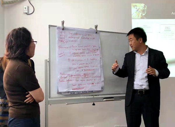 复旦-杜伦工商管理博士(DBA)项目2018级学员于10月18日开始了DBA项目的正式学习。此次项目的第一模块“商业研究实务”由杜伦大学商学院教授Sarah Xiao即复旦-杜伦工商管理博士(DBA)项目杜伦方主任教授。课堂上,同学们积极开展小组讨论,气氛活跃;课堂外,趁着午餐时间海阔天空地畅谈。