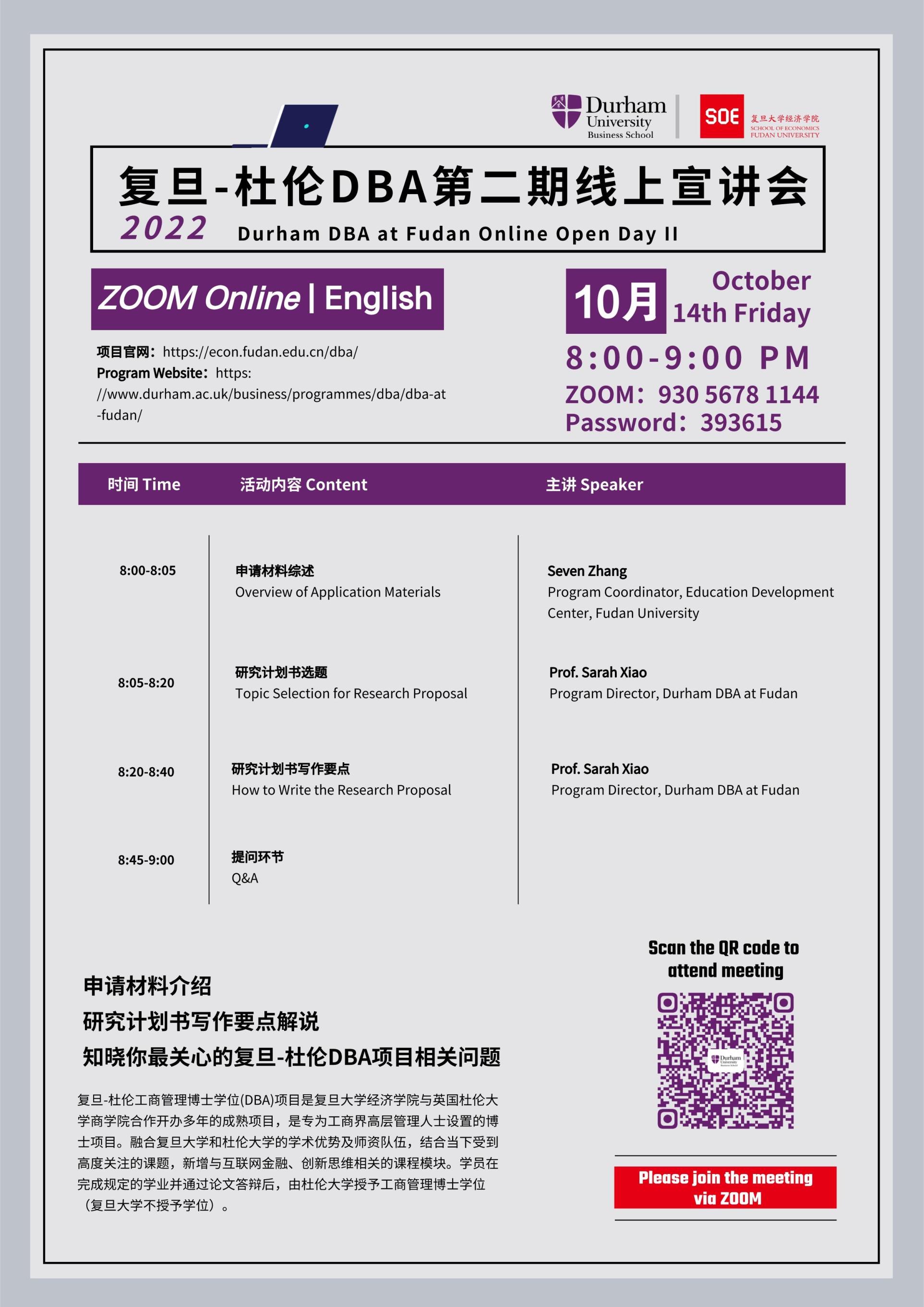 2022年10月14日 复旦-杜伦DBA项目线上宣讲会 | 第二期