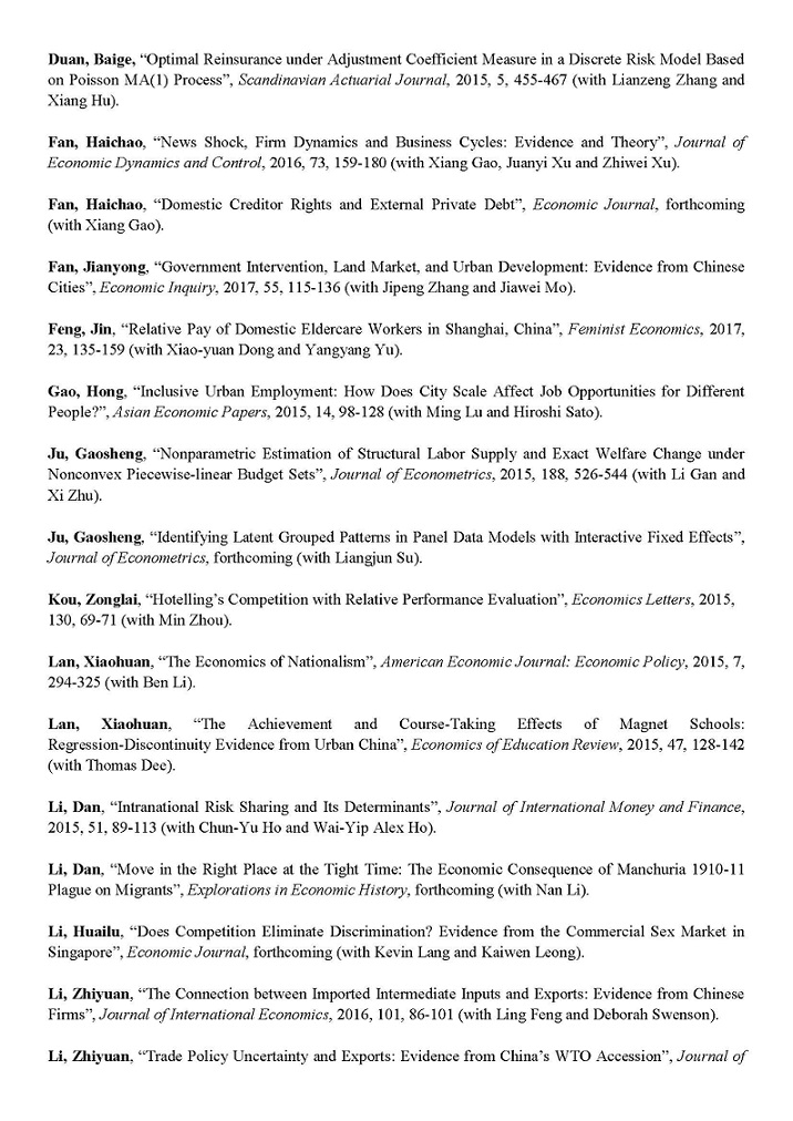 List of Some Faculty Publications since 2015