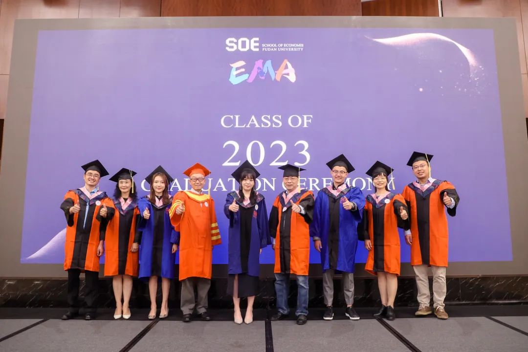 EMA students listened intently as Prof. Zhang Jun, Dean of the School of Economics, delivered an inspiring graduation speech, urging them to make a positive impact on the world and to never forget their time here at Fudan and the SOE.