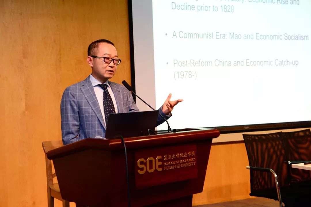 张军教授为学生致开幕讲座。为同学们讲述了中国经济的概况,伴随中国历史的介绍,引领同学们学习了中国经济不同时期的起伏状况,分析了中国经济发展的趋势,并为同学们展现了中国经济的光明未来。