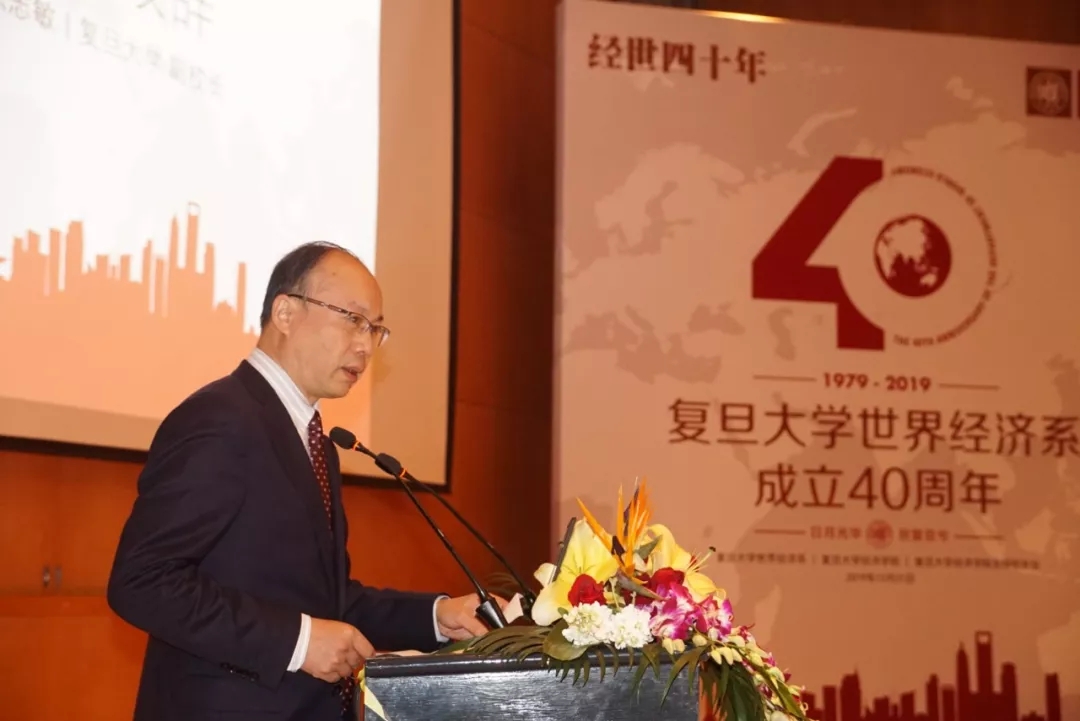 副校长陈志敏教授致辞。陈校长首先祝贺世界经济系建系四十周年。他回顾了世界经济系的历史。日本av片