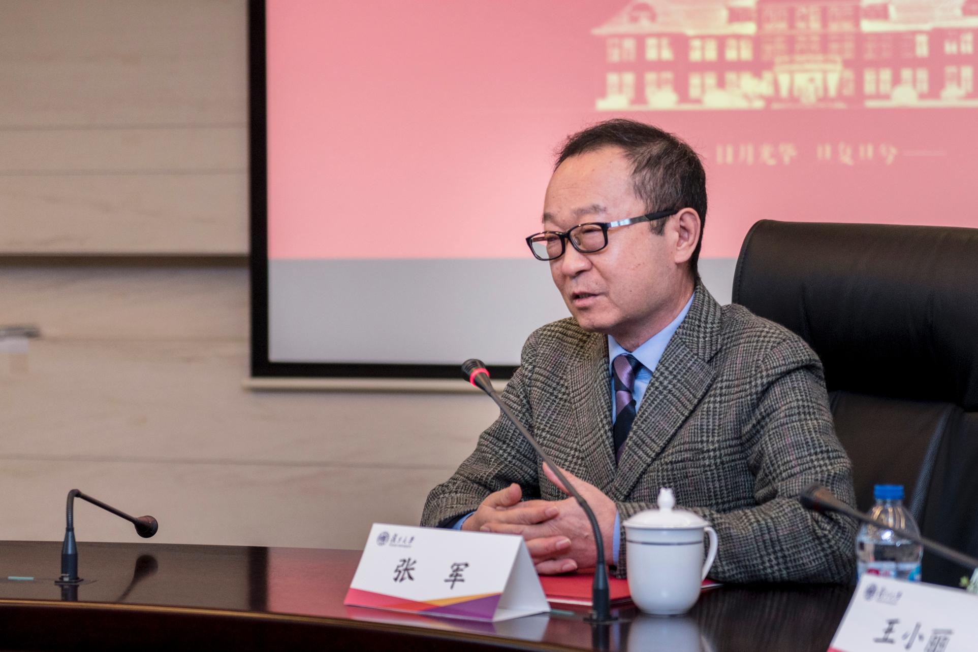 《关于聘任张军教授为文科资深教授的批复》,向张军教授颁发了资深教授聘任证书,并对张军教授表示了祝贺。他指出,文科资深教授是我校人文社会科学领域的最高学术岗位,学校将充分发挥文科资深教授在事业发展中的支撑作用,积极推动其在人才队伍建设中的引领作用,促进人文社会科学的繁荣发展,提升学校核心竞争力。