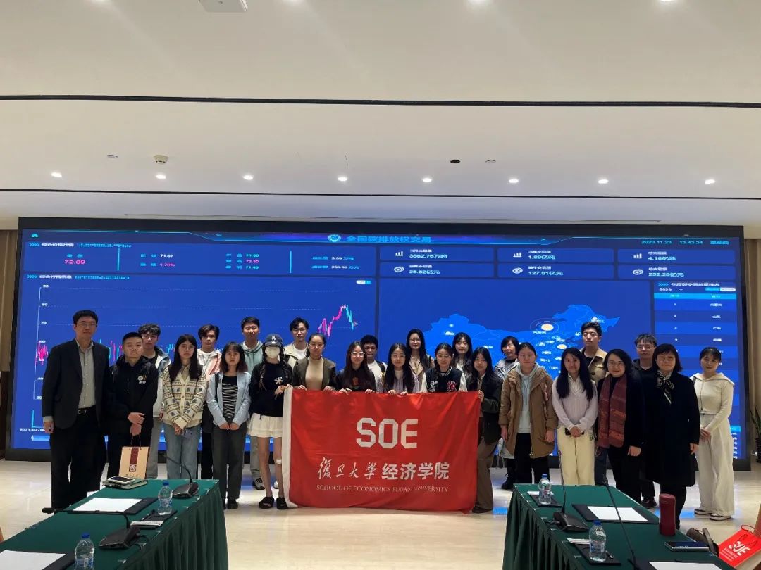 今天,在李志青老师的带领下,我们一行人共同来到位于中美信托金融大厦的上海环境能源交易所进行调研。我们首先参观了二楼大厅,大厅的大屏幕上显示着碳市场的实时交易情。而后我们到达了二楼的会议室,听负责人从各个角度非常全面地讲解了环交所的各项事务与当前碳市场的环境、碳配额的分配标准等,非常长见识。而后李老师也进行了一些讲解,同学们提了很多有意义的问题。这场调研真的收获良多,让我深入了解了碳市场交易的很多知识,非常感谢李老师能够带我们进行这场调研。