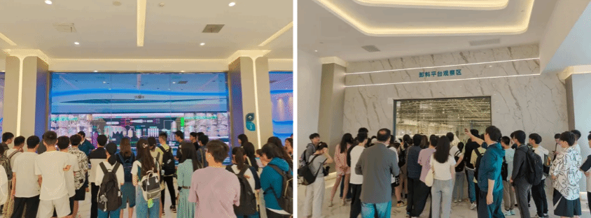 随后,讲解员带领师生前往能源中心二期,让大家近距离了解垃圾资源化的魅力。在中心内,通过卸料平台观察区,师生们可以看到由卡车运来的干垃圾被送入焚烧进料口。在参观中控室的过程中,讲解员详细讲述了垃圾焚烧的运作流程以及中控室的作用,工作人员需要根据实时情况调节参数以确保最优的运作环境。在参观的过程中有不少同学就具体的操作、垃圾焚烧的运营模式、垃圾资源化处理的行业现状等问题提出疑问,活动负责老师就同学们的疑问,结合具体操作,提供了细致的解答,为同学们深入了解垃圾资源化处理打开了更多的思路。