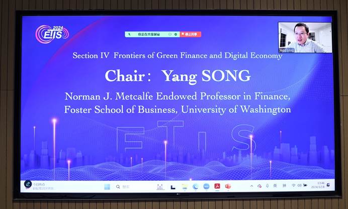 随后,美国华盛顿大学商学院Norman J. Metcalfe金融学讲席教授宋阳主持了“绿色金融与数字经济前沿”的主旨演讲环节。