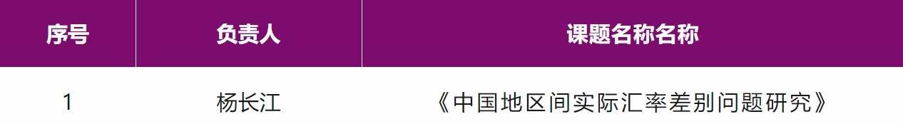 杨长江教授作为项目负责人的《中国地区间实际汇率差别问题研究》获批重点项目立项。