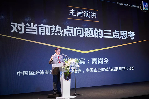 90岁高龄的中国经济体制改革研究会会长、中国企业改革与发展研究会会长高尚全教授在演讲中从”过紧日子”这个话题切入。他认为,紧日子的主体是政府,政府要带头,要限制公权力,要坚持走法定的程序,过紧日子跟消费扩大不要对立起来。同时,企业需要有过紧日子和苦日子的忧患意识,才可以立于不败之地。在演讲的后半程,高尚全教授谈到了“两个中心”的问题。所有制中心和竞争中心是镜子的两面,需要用竞争中心的方法,最终实现所有制的中心,两个中心是解决中国经济增长的动力和核心。同时如何应对全球范围内发生的贸易摩擦,应对国有企业的补贴问题,不仅仅是中国,也包括美国,办法就是处理好所有制中心和竞争中心的关系。
