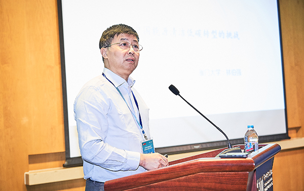 在论坛主旨报告环节,由《经济研究》杂志社社长张永山教授主持,中国社科院城市发展与环境研究所所长潘家华教授、厦门大学中国能源政策研究院院长林伯强教授分别发表了主旨演讲。