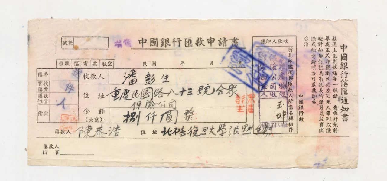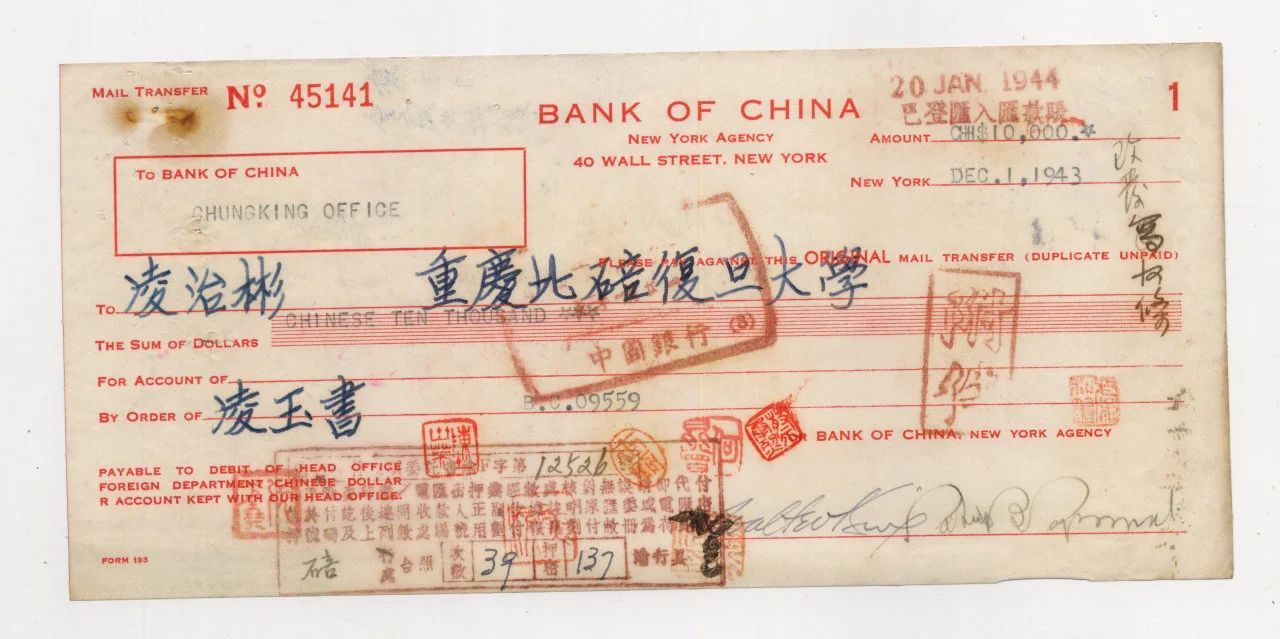 十几年前的一次偶然机会,他通过一位老部下获得了抗日战争时期复旦南迁重庆北碚时多张校友资助的汇款凭证。