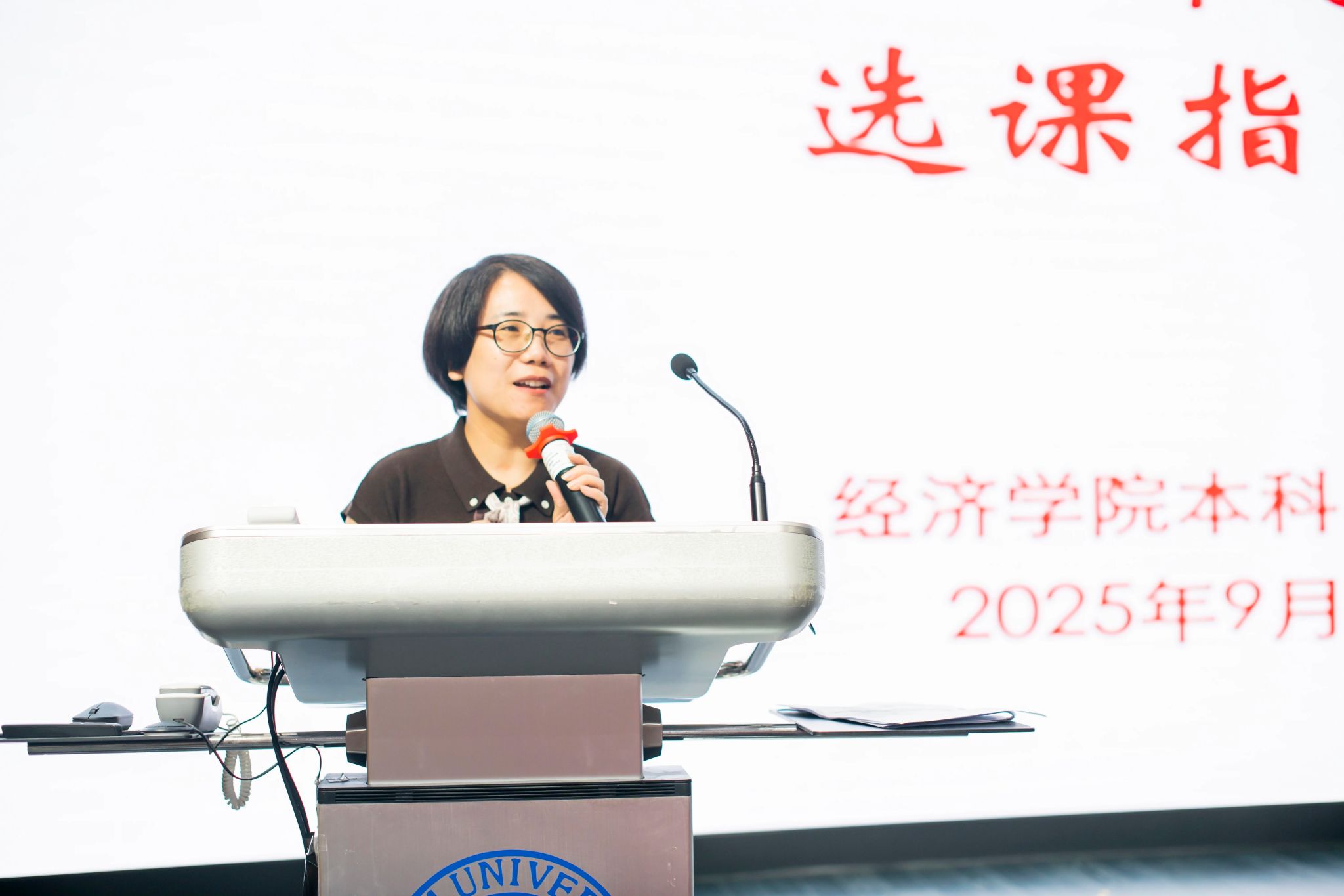 “2+X+Y”培养体系、课程设置及修读要求;本科教务办副主任张毅老师详细阐述选课流程以及注意事项;刘昊昱老师具体介绍本科生教学管理规定。同时本次会议邀请前教务办主任陈梅老师和数理经济拔尖班班主任、保险系的教学系主任段白鸽老师为新生答疑。
