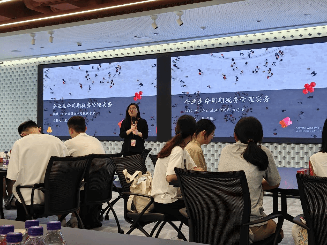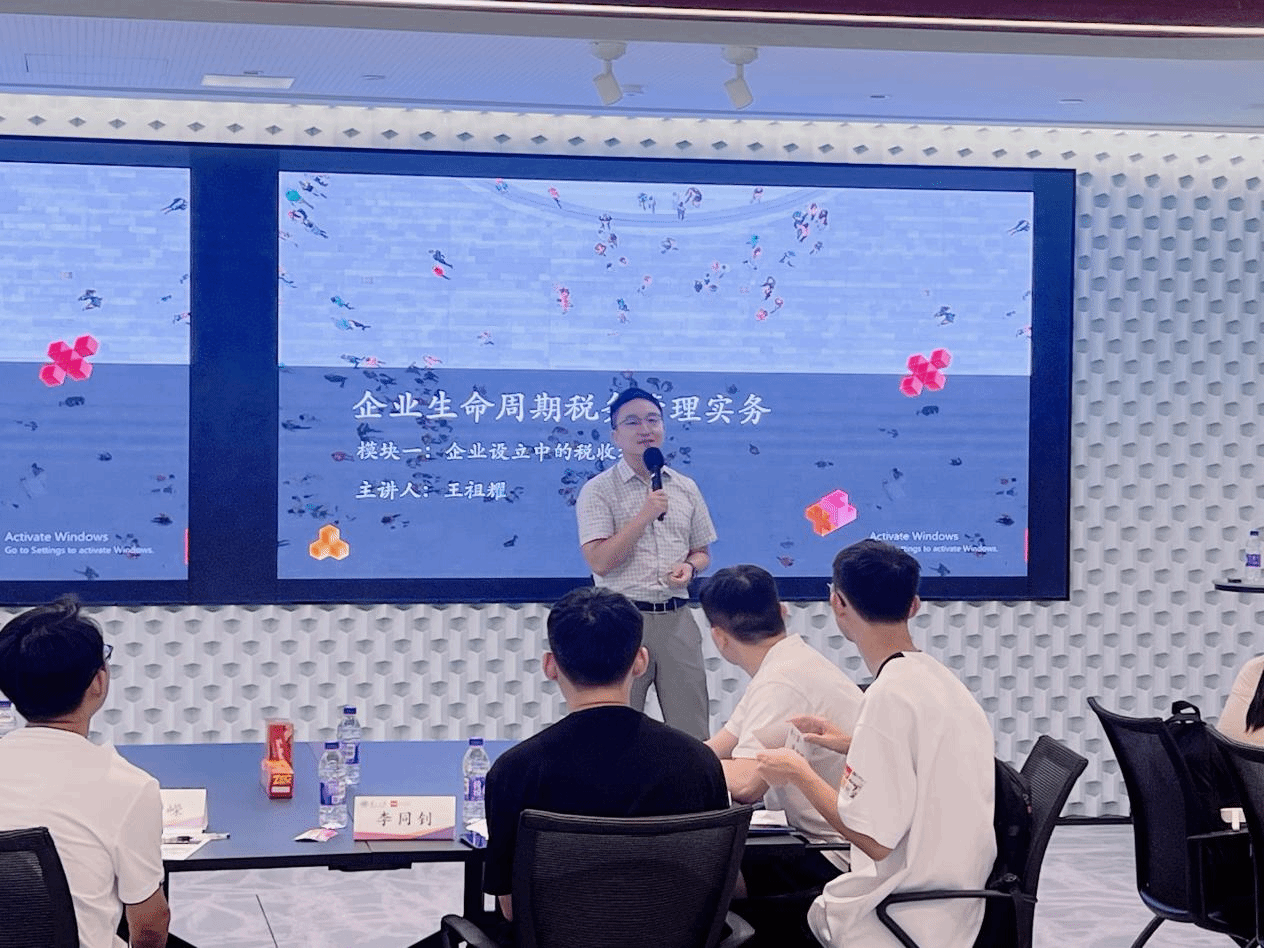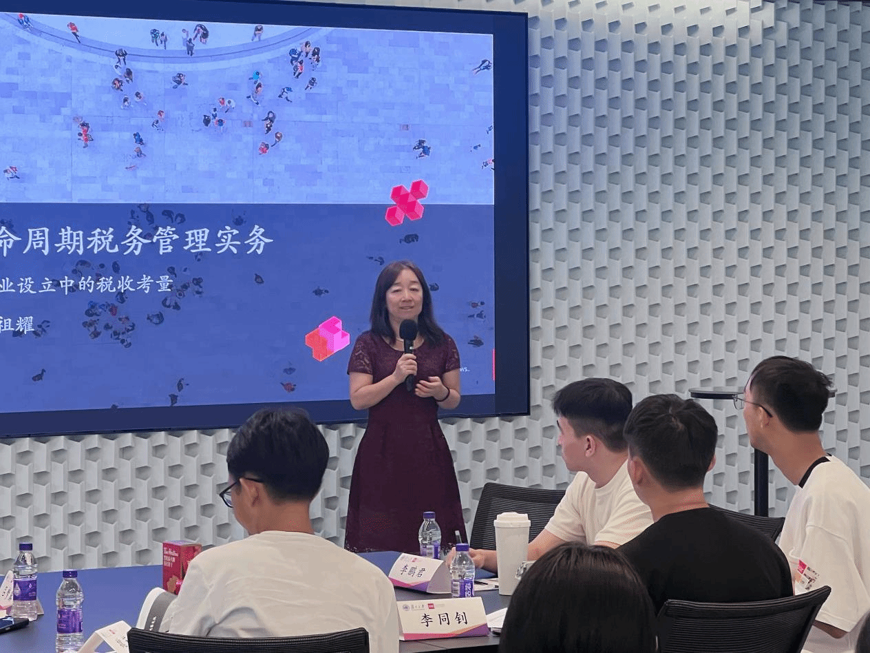 国际金融系98级校友、普华永道中国内地税务及商务咨询合伙人王祖耀先生以《企业设立中的税收考量》为题,为同学们带来课程的第一讲。凭借丰富的行业经验和实战积累,他从企业设立的法律形式与税务影响、新《公司法》下的税务考量、企业设立的选址考量这三个方面,结合政策动态与实务情景,对企业设立的税收问题进行分析,着重地讲解了股改的个税处理、科创优惠激励体系、灵活用工平台的征税模式等关键议题和热点议题,同时,王祖耀先生也邀请税务部的同事与大家分享真实商业案例,引导同学们分析讨论企业“实质性经营”的判定等实务问题。同学们积极思考,踊跃回答问题,教与学在一次次的互动中相融相促,共同提升。