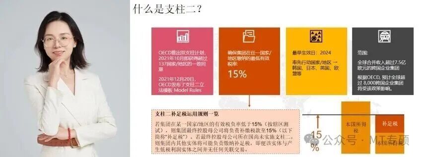 余佳女士拥有丰富的从业经验,她首先用浅显易懂的语言系统梳理了国际税改“支柱二”方案的主要内容和最新进展,包括什么是“支柱二”及其三大核心征税规则(QDMTT,IIR,UTPR)、支柱二的全球立法进程、受支柱二影响的跨国企业集团成员实体范围、支柱二方案下分税收辖区的有效税率和补足税计算方法、安全港规则的运用、不同税收优惠的补足税风险比较等。