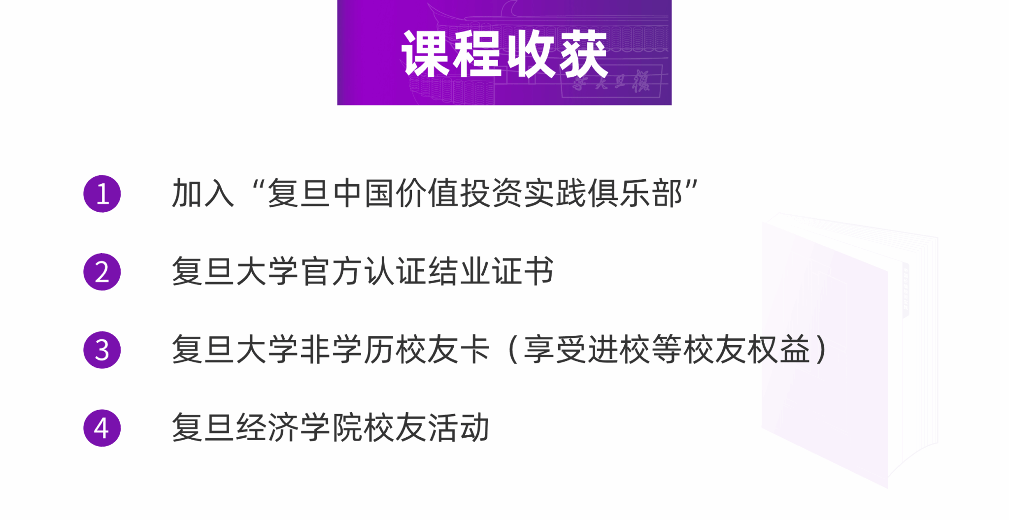 为此,我们隆重推出第二期复旦中国价值投资实践公开课 。