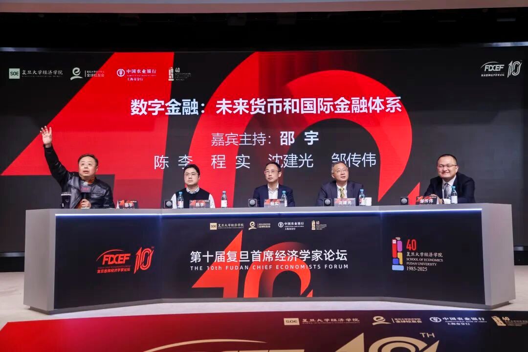 管理学院科创中心首席经济学家邵宇,东吴证券全球首席经济学家、东吴香港CEO陈李,工银国际首席经济学家程实,京东集团副总裁、首席经济学家沈建光,江苏省金科数字与科技金融研究院院长、江苏银行苏银研究院名誉院长邹传伟等嘉宾围绕“数字金融:未来货币和国际金融体系”主题进行了热烈探讨,纷纷提出了自己的见解。嘉宾指出,数字人民币是应对地缘政治冲突、推进人民币国际化的重要抓手。中国应通过制度创新、场景拓展以及加大开放等举措,逐步强化跨境支付领域优势。未来国际货币体系将呈现多元化格局,中国数字金融的健康发展需平衡技术创新与合规监管,同时依托金融强国建设相关政策稳步推进。