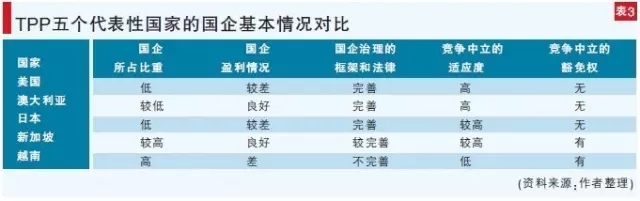 TPP有关国企的条款,其核心基于竞争中立原则,旨在为国企在指定垄断领域和市场上的活动提供规范的制度性框架,理顺国企与政府之间的复杂关系,避免国企在市场竞争中享有特权从而妨碍市场公平竞争秩序。国企条款并未牵涉到对特定经济体和社会制度的歧视,越南作为一个社会主义国家也被纳入其中。尽管TPP成员之间国企发展程度不一,当下对竞争中立标准的适应程度也不尽相同,但各缔约方普遍认为竞争中立规则对本国经济和本国企业(包含国企及私企)有长期的利益,从而说服了国内反对派并努力克服短期的现实障碍。
