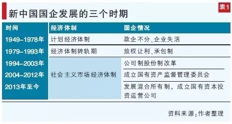 2001年中国加入世界贸易组织,在5年过渡期内,“国退民进”的趋势加强。过去,国企的投资归计委管,薪酬归劳动部门管,资本金归财政部门管,经营者的任免归人事和组织部门管,负责企业整体监管的却是经贸委。国有资产找不到责任人,权责不明的问题十分严重。2003年成立国有资产监督管理委员会(简称“国资委”),使九龙治水的情况得以改变。2013年发展混合所有制和成立国有资本投资运营公司,实行“国资委-国有资本投资运营公司-国有企业”三层管理,强调令市场在资源配置中起决定性作用。