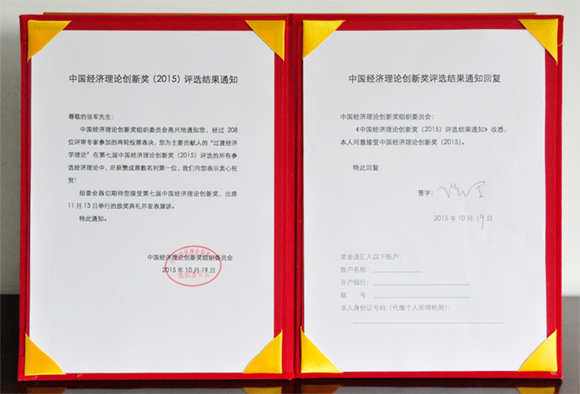 举行了当面通知获奖的仪式。11月13日,组委会将在深圳大梅沙举办“中国经济学家年度论坛暨中国经济理论创新奖(2015)颁奖典礼”。