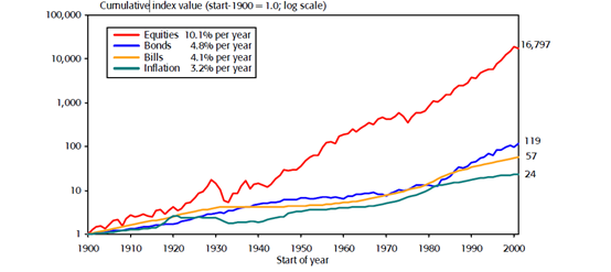 图2 美国资本市场的百年收益率(来自Elroy Dimson等)