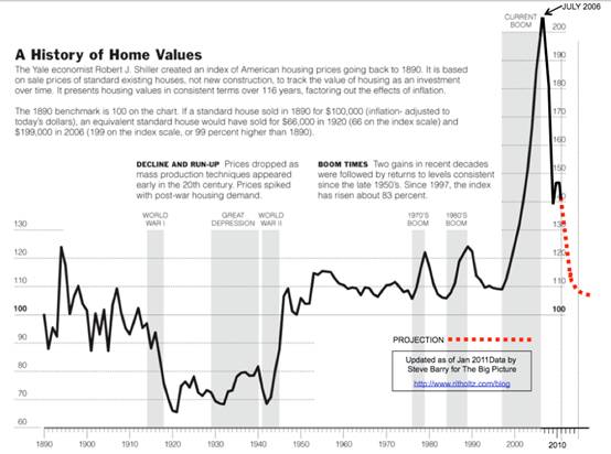 作为对比,我们可以看下美国资本市场和房地产市场的情况。如果在股票市场投资1美元并持有100年,那么它名义价值的年均增长率是10.1%,通胀调整之后,每年的增长率还是有6.9%,所以是非常好的(见图2)。再看美国房价过去100年的走势,除了大萧条时期和最近的大衰退之前几年的价格异常,基本上是没有太大的波动,为什么?因为美国这样的国家有一个非常强劲的金融体系来吸收投资资金(见图3)。