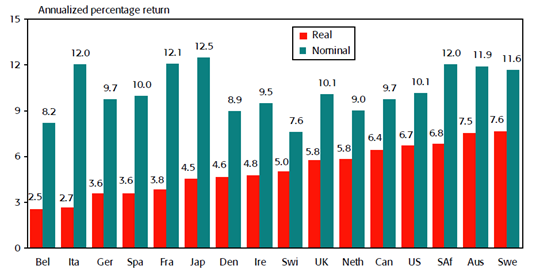 图4 国际资本市场的百年收益率(来自Elroy Dimson等)