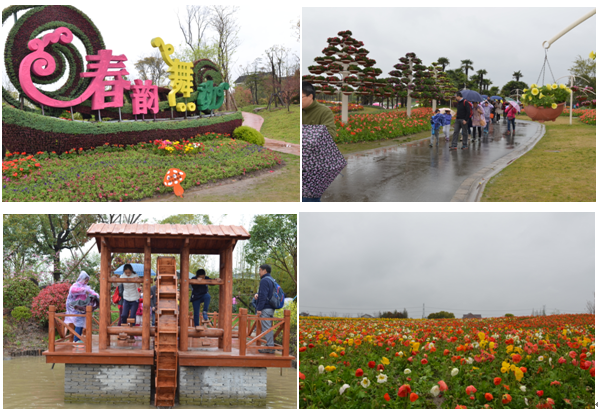 春游的第一站是周浦花海。周浦花海位于上海浦东新区周浦镇,占地面积500亩。那里一年四季鲜花不断,形成震撼的花海主题。不同颜色,不同品种的花卉种植在一起,形成色彩斑斓的彩虹花田,看上去赏心悦目非常有震撼力。大家一踏进花海,就被那浓郁花草气息和美妙的田园风光所吸引,老师们根据自己的观赏偏好分成几组各自进行游览,都为园区内争芳斗艳的奇花异草赞叹不已。