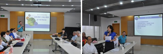 退休党支部活动的开展进行了介绍,退休教师党员积极参与分享和讨论,现场气氛非常热烈。
