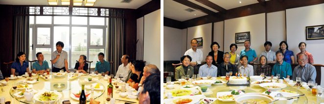 中午,学院在校内旦苑餐厅设宴为今年虚岁70岁的金绮、董耀宗老师夫妇;今年虚岁80岁的洪远朋老师夫妇、王克忠老师夫妇、胡燕芬老师夫妇集体祝寿。学院党委书记石磊、工会主席严法善、副院长刘军梅、院办主任施侠老师,退休教师党支部书记罗秀梅老师以及退管工作小组的王晓莉老师参加了祝寿午宴。石书记向老师们介绍了学院的发展情况,并在祝酒辞中祝老教师们身体健康,幸福快乐。除了学校的礼金以外,学院还为退休老师们准备了生日蛋糕和精美的礼物。此外学院特意在敬老节期间前往医院和家中探望了95岁高龄的蒋楠生老先生,85岁高寿的刘同舜老先生、88岁高寿的马之騆老先生。学院准备继续探望几位住院的老先生。
