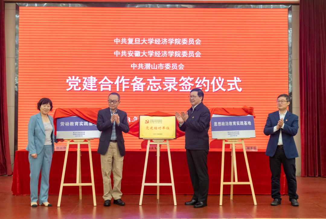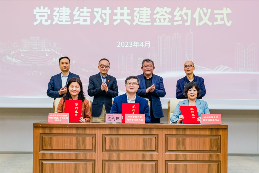 敬送了感谢信,并赠送了书籍。随后,三方代表签署了党建结对共建合作备忘录,安徽大学党委副书记、常务副校长陈诗一为三方授牌。