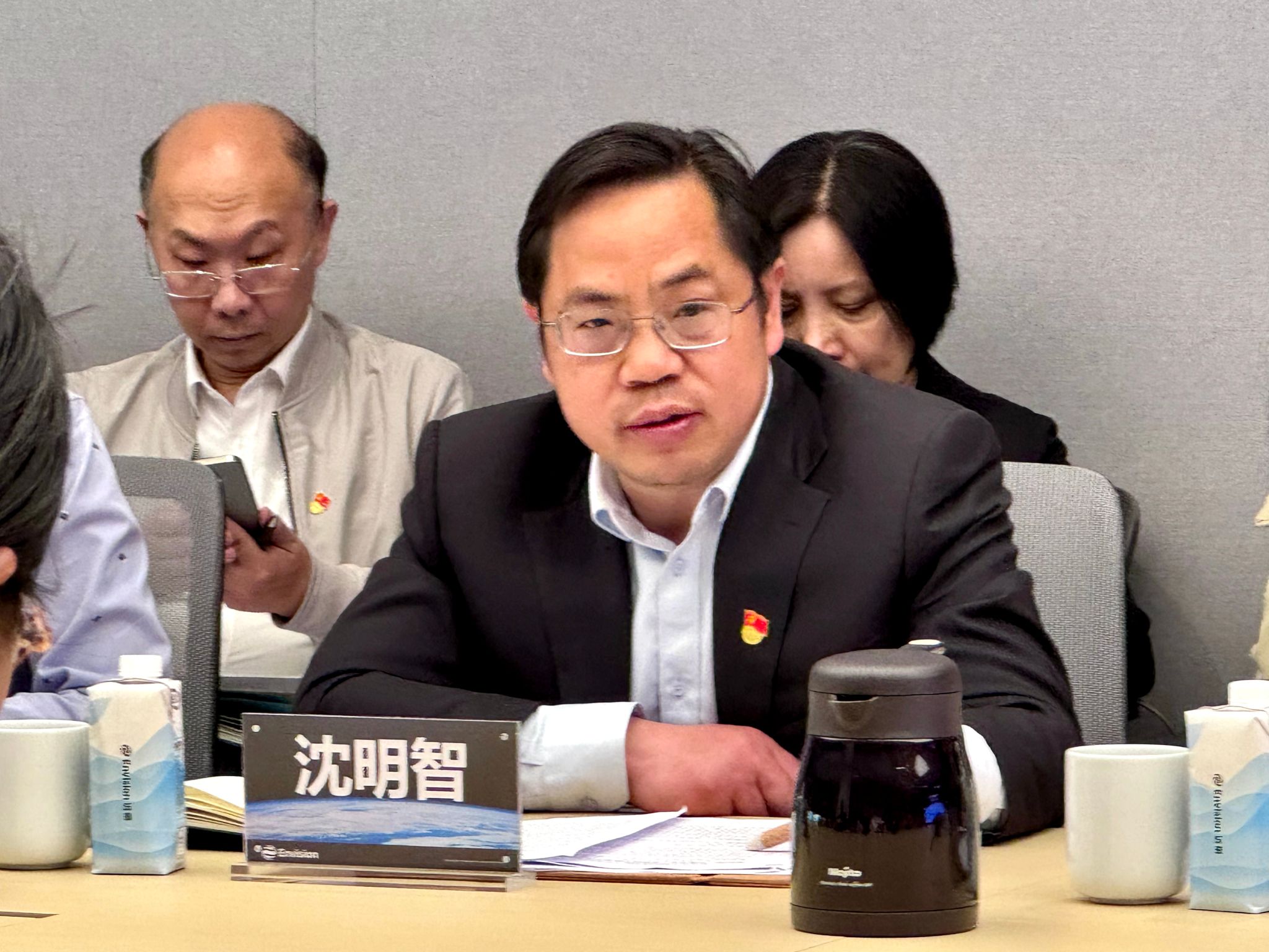 活动由交通银行发展研究部党支部负责人沈明智主持。全体人员首先参观了远景能源有限公司,深入了解企业在绿色能源技术创新、产业链协同发展等方面的实践成果,为后续座谈交流奠定实践基础。