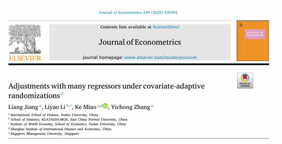 苗克副教授与三位合作者的研究论文“Adjustments with many regressors under covariate-adaptive randomizations”在国际顶尖期刊Journal of Econometrics线上正式发表。