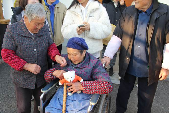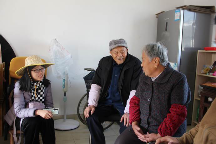 同学们将要访问的就是住在公寓里的这些老人们。在那里,我们受到了热烈欢迎。或在家中,或在院落里,伴着鸡鸣与虫嚣,我们这帮大学生与老人们围坐一起亲切交流。可惜没有哪位画家留意,不然定会留下一张和谐有趣的新时代田园画。