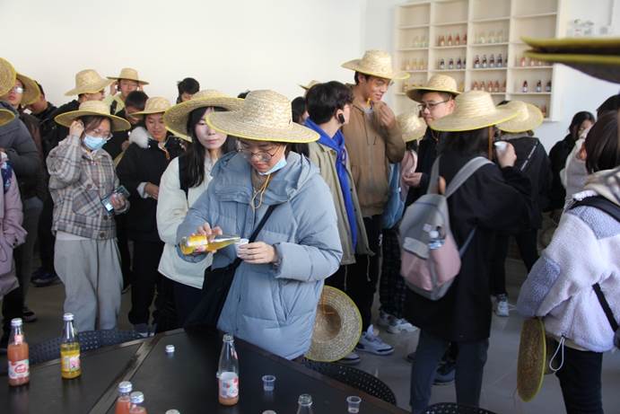 用过午餐,同学们前往吴房村的果汁工厂参观。这里的工厂以当地生产的水果为原料,帮助农民消化水果产能,是吴房村对产业融合发展的新尝试。改革开放后,乡镇企业的大量涌现,成为了中国经济飞速发展的里程碑事件。如今,让现代化的乡镇企业再度利用起广大乡村的闲置资源,让产业发展渗透以人为本的精神,似乎是乡村振兴的可行举措。