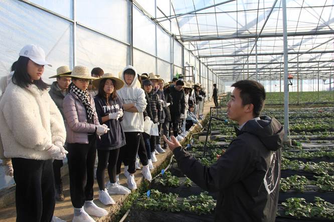 大家一边劳动,一边交流。劳动过程中,农学专业毕业的刘彦斌哥哥从种源、销售、种植地分布等多个方面介绍了中国草莓种植业的现状。同学们结合自身专业背景,讨论草莓产业的固定成本规模、成本回收周期、利润分成等问题。