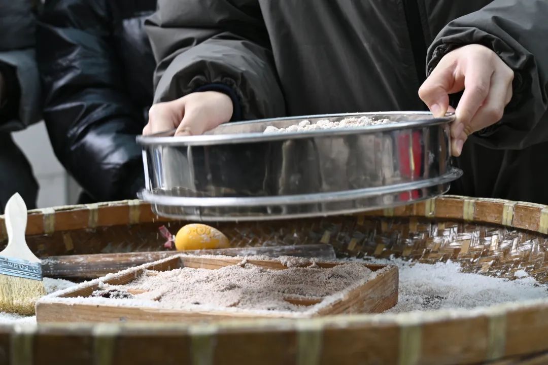 2021级金融保险班的同学们制作并品尝了罗泾镇特色小吃:四喜风糕。筛粉、蒸糕、出炉,热乎乎的蒸糕,枣与坚果的香气交织着糯米的清甜,令人忍不住多吃一块。“我们从筛糕粉这一步做起,将糕粉以及其他原材料放入容器铺好、放入蒸箱进行蒸制。看似不难,却要记住众多小诀窍才能使成品松软可口。作为一个上海人,七宝方糕、崇明糕自是家里常吃的,宝山的风糕倒是吃得不多。这次品尝到自己亲手制作的四喜风糕,可谓是双倍快乐。”2021级金融学系的王诚瑞说道。