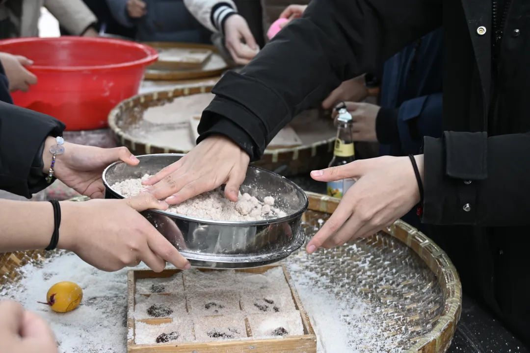 ▲2021级金融保险班在当地村民指导下制作四喜风糕