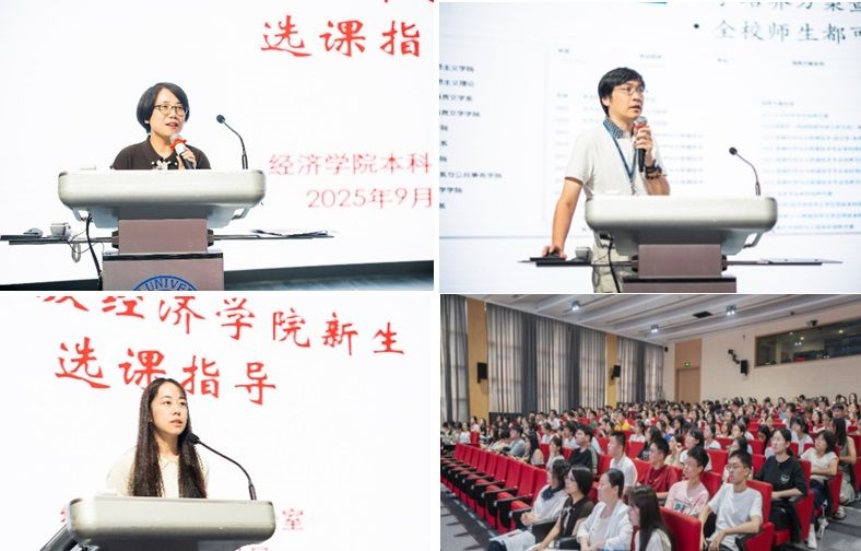 “2+X+Y”培养体系、课程设置及修读要求;本科教务办副主任张毅老师详细阐述选课流程以及注意事项;刘昊昱老师具体介绍本科生教学管理规定。同时本次会议邀请前教务办主任陈梅老师和数理经济拔尖班班主任、保险系的教学系主任段白鸽老师为新生答疑。