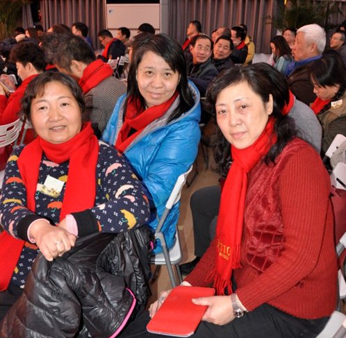 校友会主办的“致青春——我们的八十年代”主题晚会于2014年12月27日晚在上海开放大学国际会议中心举行。数百位80年代复旦校友济济一堂,大家围起绣着复旦校徽的正红色纪念围巾,在签名墙前合影留念并步上红毯叙说学生时代的美好回忆,整个会场暖意融融。