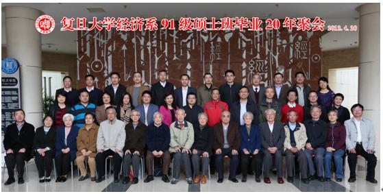 副院长刘军梅老师、经济系硕士生导师张薰华、伍柏麟、徐桂华、叶世昌、洪远朋、尹伯成、王克忠、陈文灿、张晖明、严法善老师以及1991级经济系的20余位校友。