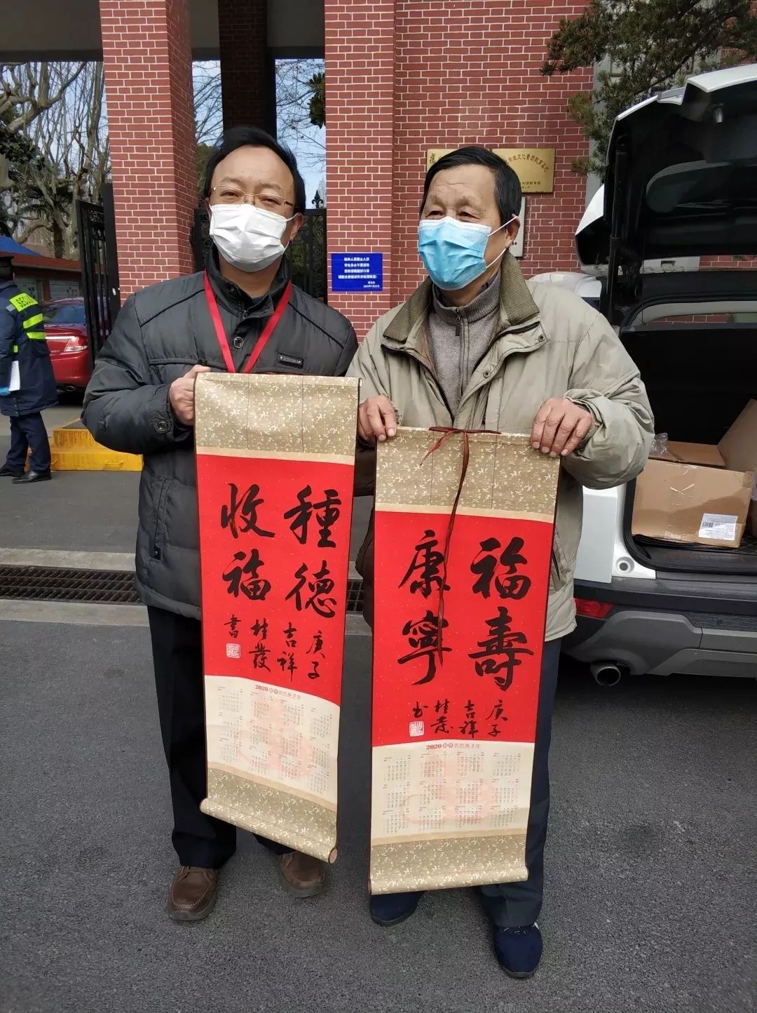 2015年因查询档案事宜,陆云刚校友认识了档案馆原馆长周桂发老师。今天,周桂发老师亲自到场赠送陆章基、陆云刚父子亲笔书写的两幅书法,祝他们“福寿康宁”“种德收福”。