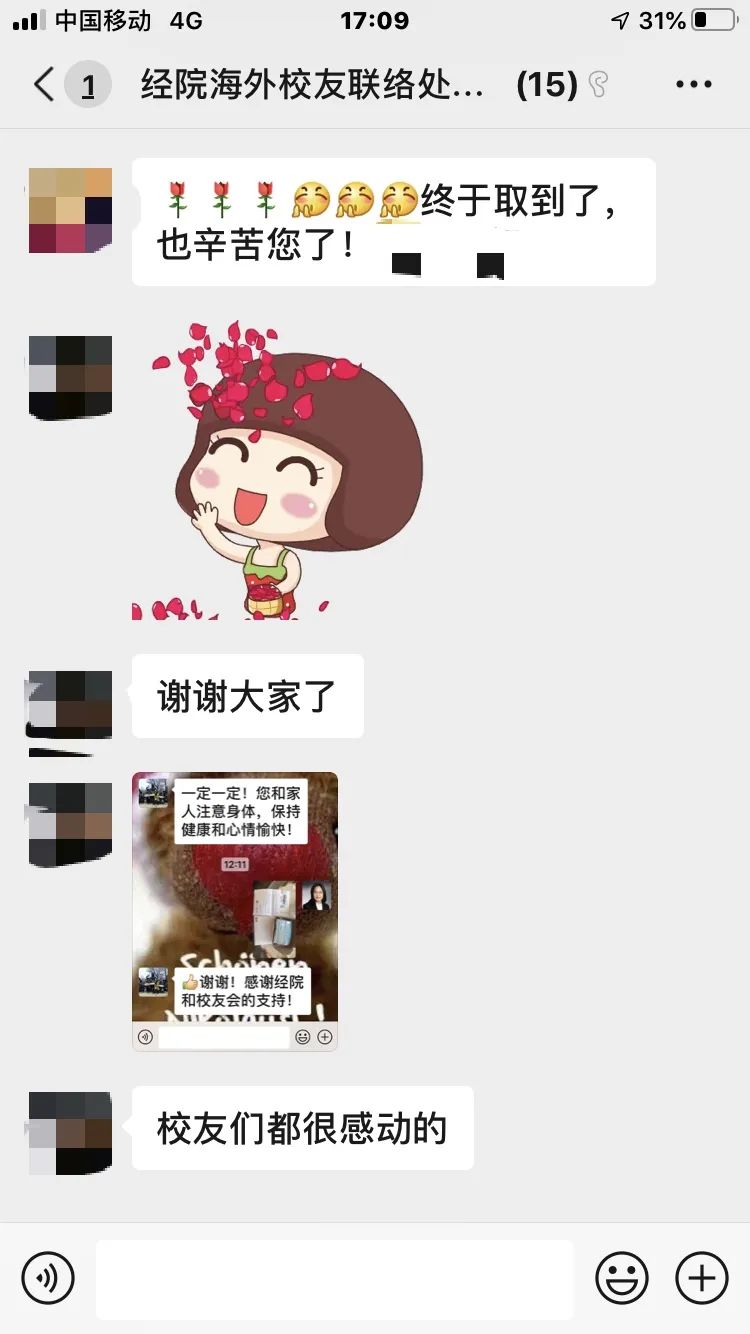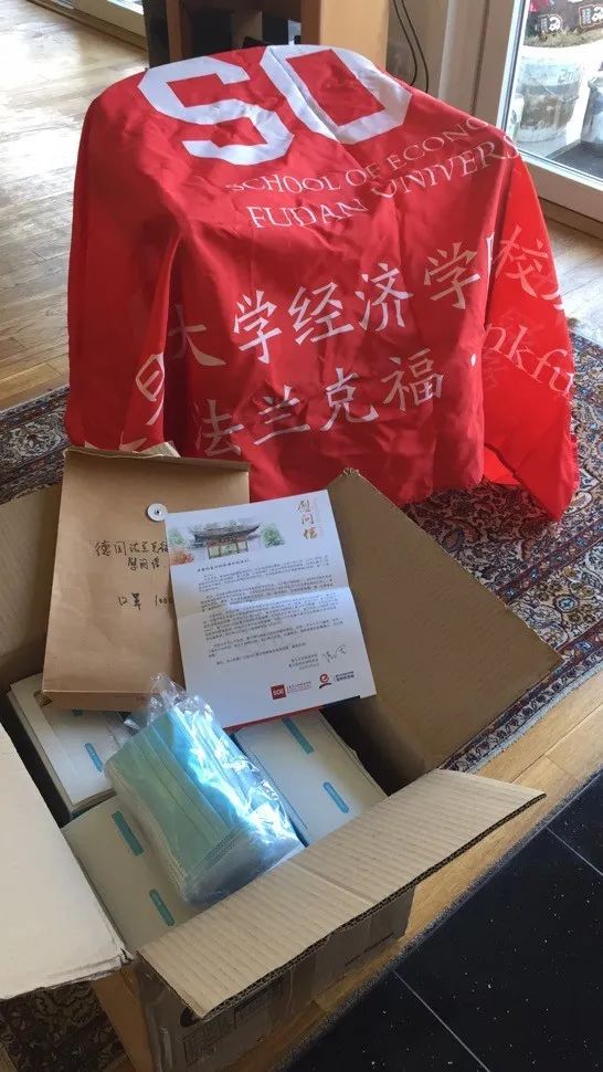 12个海外校友联络处沟通对接,了解当地情况和校友需求,积极组织募捐,紧急联系抗疫物资。在克服了抗疫物资紧缺、货源无可靠保证、到货时间不确定、海外邮寄物流关卡重重等问题后,经多方筹措沟通,得益于诸位经院校友的热心支持,我们用最快的时间募集到了一批一次性医用口罩并于3月23日将首批物资安排寄出。与口罩一起送出的还有来自母院饱含关切和祝福的慰问信。运送物资期间又遭遇了诸如德国海关临时扣押口罩、需要提供购买发票和订单才能办理清关手续等担忧,再次感谢多位校友的帮助和支持,所有人翘首期望着口罩能顺利到达。