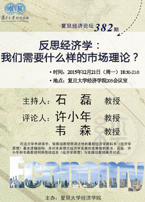 在这次学术讲演中,张维迎教授将讲述他的最新经济学教科书《经济学原理》基本逻辑结构,并对未来理论经济学发展的发表他的看法。石磊、许小年和韦森教授则将围绕这本《经济学原理》与张维迎教授展开对话。