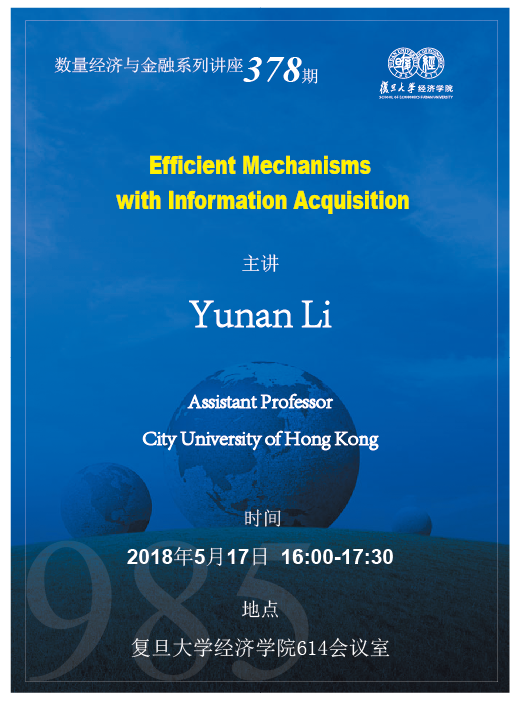 数量经济与金融系列讲座第378期: Efficient Mechanisms with Information Acquisition