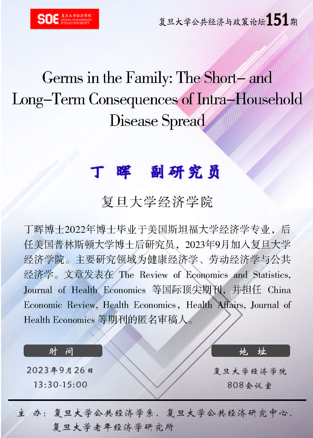 日本av片 公共经济与政策论坛151期:Germs in the Family: The Short- and Long-Term Consequences of Intra-Household Disease Spread