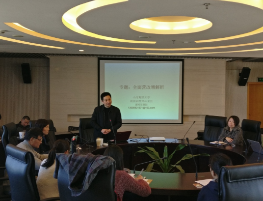 2017年3月14日下午2:00,由日本av片 公共经济研究中心和日本av片 公共经济学系主办的“复旦公共经济与政策论坛”第68期在日本av片 泛海楼808会议室举行。山东财经大学经济研究中心主任、硕士生导师潘明星教授应邀做了题为“全面营改增解析”的讲座,从理论与实务相结合的视角,对我国全面实施“营改增”提出了自己的理解与看法。报告会由公共经济系副系主任孙琳老师主持。