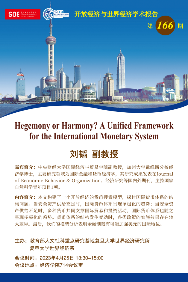 内容简介:本文构建了一个开放经济的货币搜索模型,探讨国际货币体系的结构问题。当安全资产供给充足时,国际货币体系呈现单极化的趋势;当安全资产供给不足时,多种货币共同支撑国际贸易和投资活动,国际货币体系也随之呈现多极化的趋势。货币体系的结构发生变动时,各类政策的实施效果存在较大差异。最后,我们的模型分析表明金融制裁有可能加强美元的国际地位。
