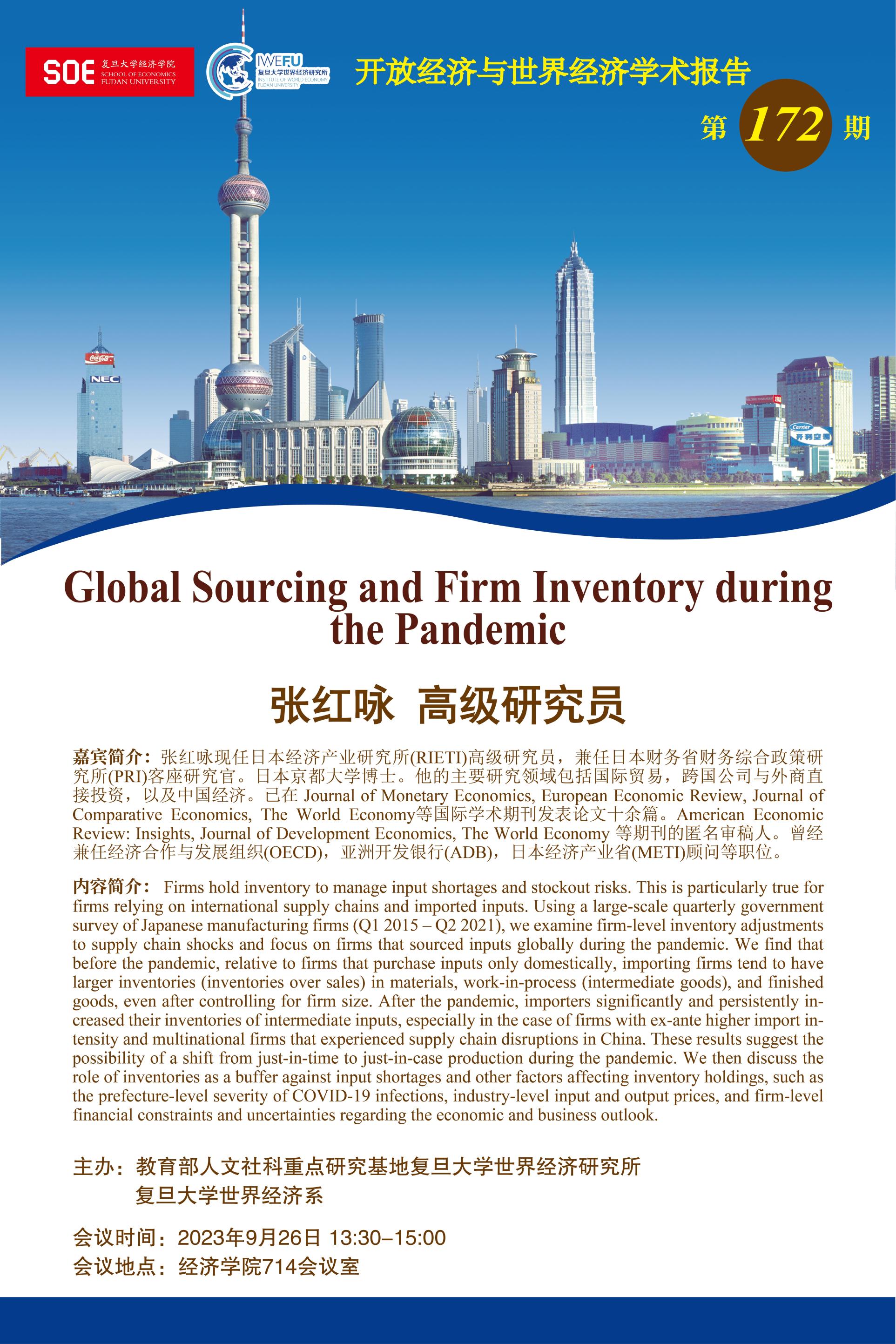 主题:Global Sourcing and Firm Inventory during the Pandemic