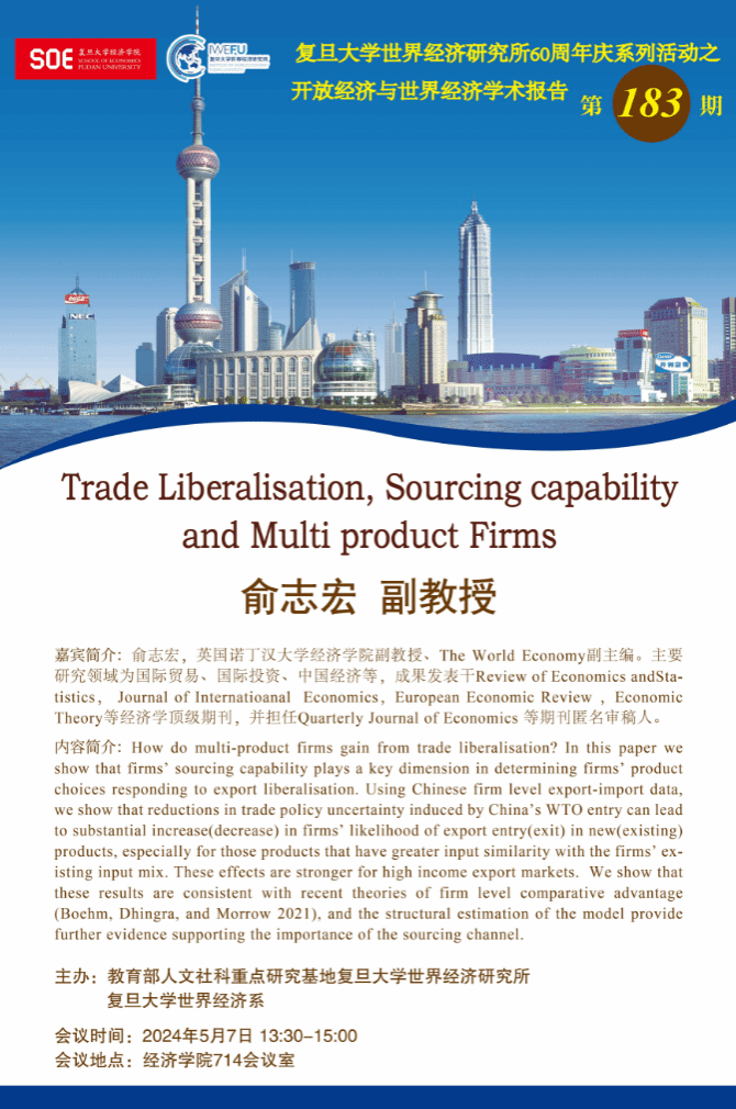 主题:Trade Liberalisation, Sourcing capability and Multi product Firms