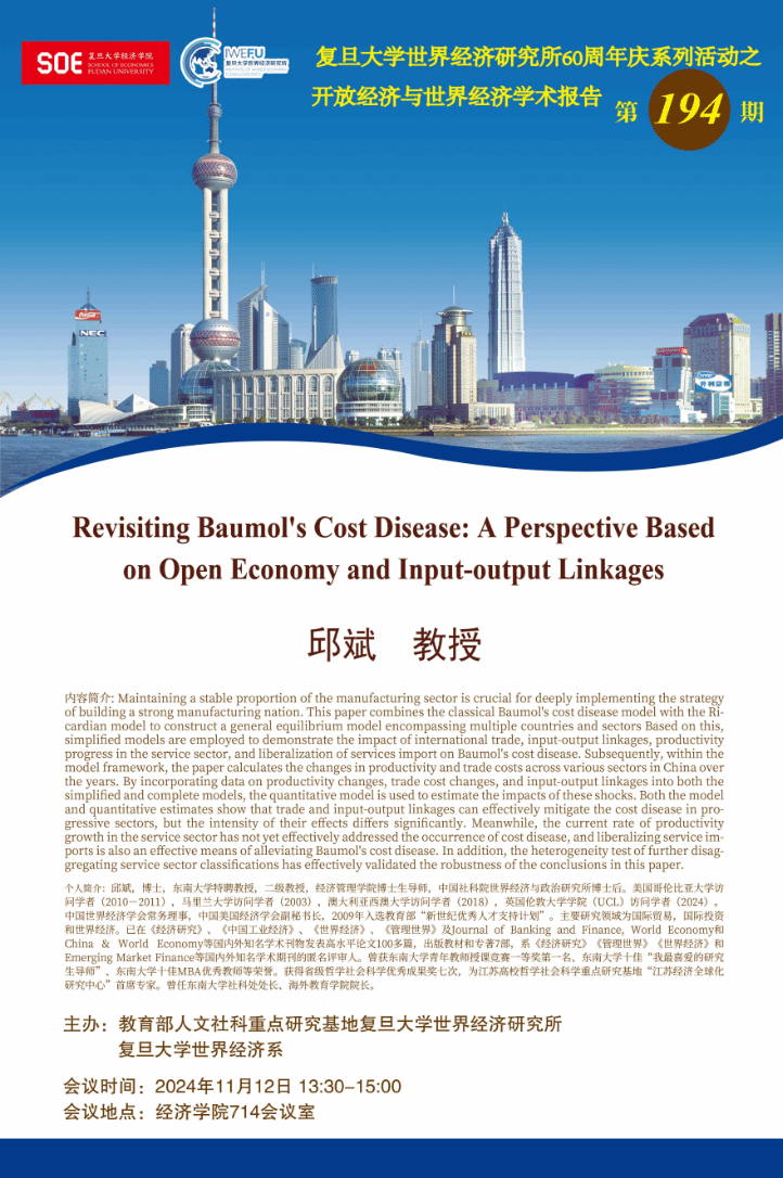 主题:Revisiting Baumol's Cost Disease: A Perspective Based on Open Economy and Input-output Linkages