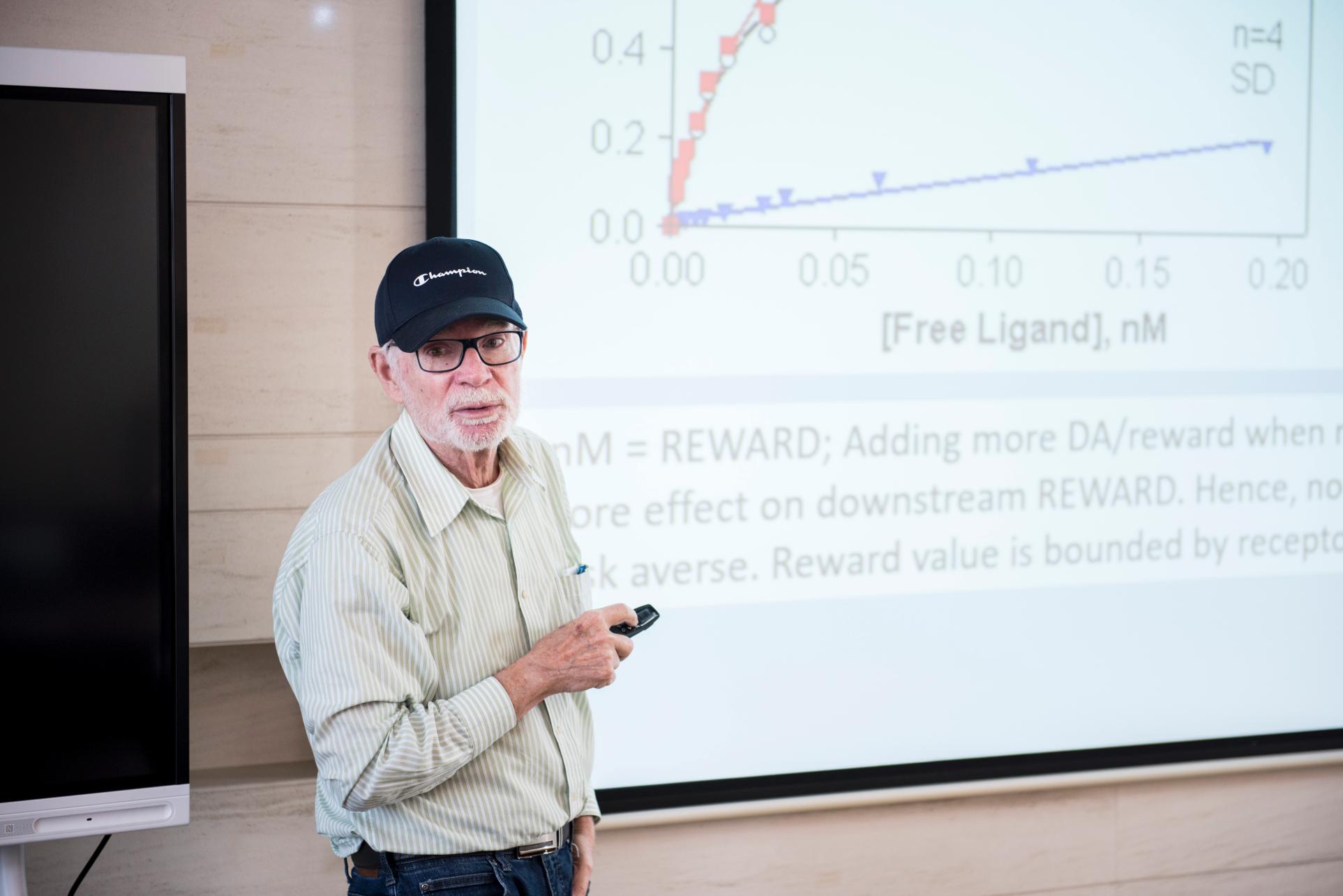 西南财经大学中国行为经济与金融中心教授Richard Ebstein做了题为“Modeling the Role of Attention in Decision Making Using Neurochemistry”的学术报告。Richard Ebstein教授从神经生物学角度进一步阐释了神经化学注意力模型,通过三重神经递质-多巴胺(DA),5-羟色胺(5HT)和去甲肾上腺素(NE)在决策中发挥的作用。其中,去甲肾上腺素(NE)调节,包括集中在蓝斑轨迹(LC)的注意力信息系统的要素,LC-NE系统有助于在注意力的两个主要模式之间进行切换:参与和集中的探索性模式与分离和不集中的探索性模式。将NE相和强直性发声与注意力功能的性质联系起来,得出可检验的含义,将决策者的基因构成、LC大脑激活、皮肤电导反应(SCR)和眼动与可观察的选择行为联系起来。值得注意的是,注意功能中的注意损失厌恶是由将不对称损失获得SCR与行为损失厌恶联系起来的证据所支持的,即对现状周围的对称风险的厌恶。进一步讨论如何测试关于NE对风险态度的四种模式的影响,包括咖啡因/尼古丁水平升高可减少获得(损失)的厌恶(耐受)并增加偏好(厌恶)以获得远景收益(损失)。